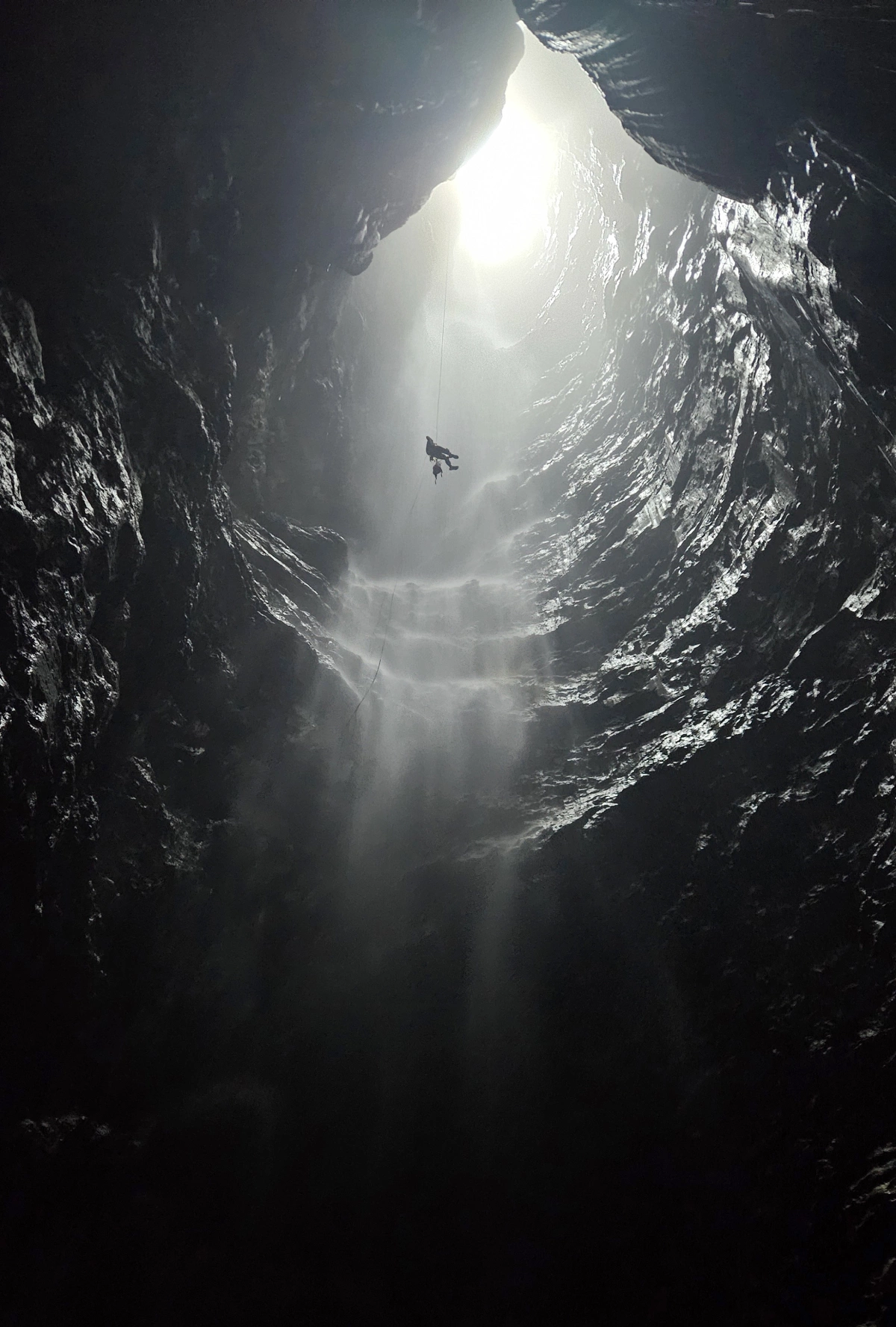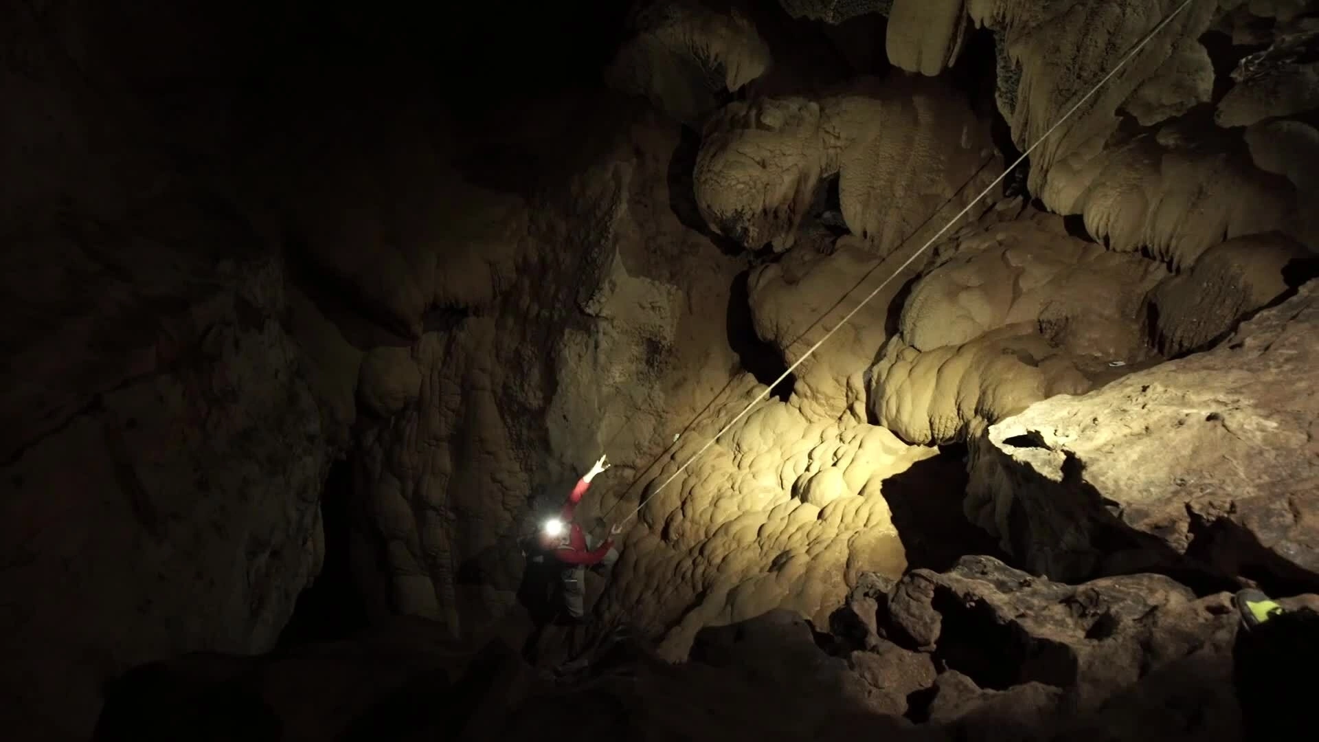 Исследователь спустился в пещеру на веревках, где быстро обнаружилась её необычная структура.
